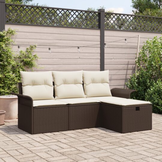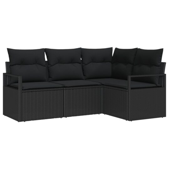 Set de canapele pentru grădină cu pernă 9 pcs Negru Rattan poli