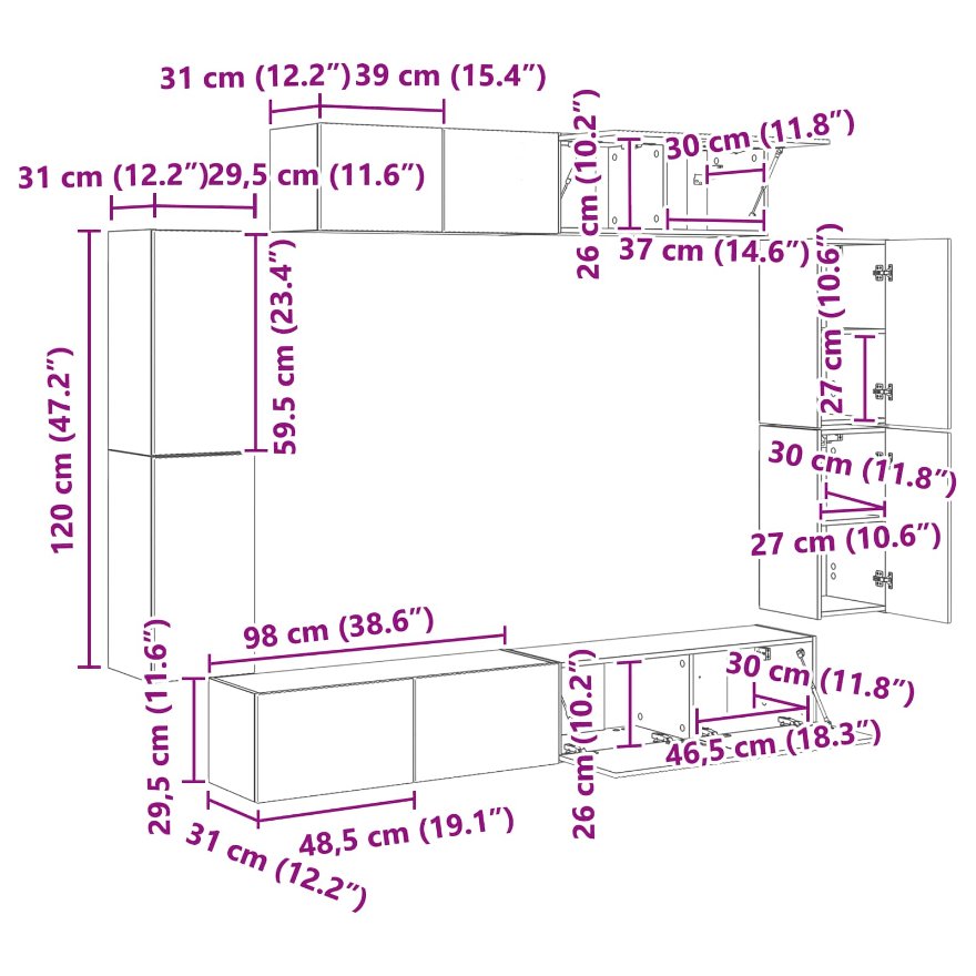 - 1 x Dulap de perete: 98 x 31 x 29,5 cm (LxWxH)