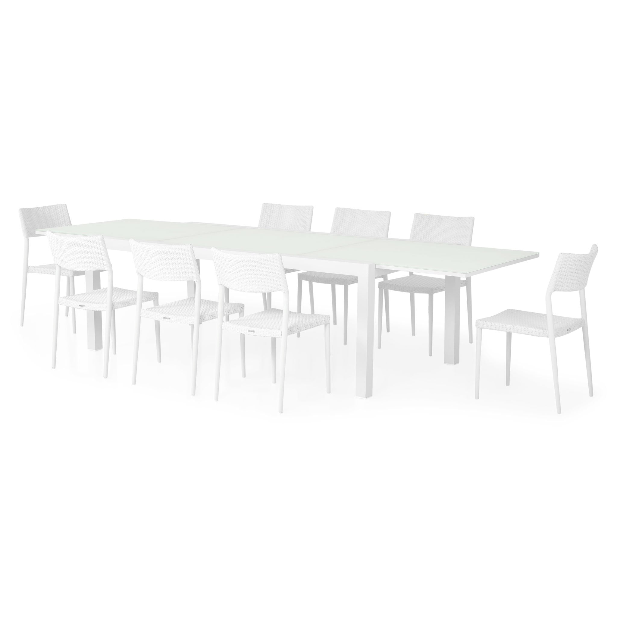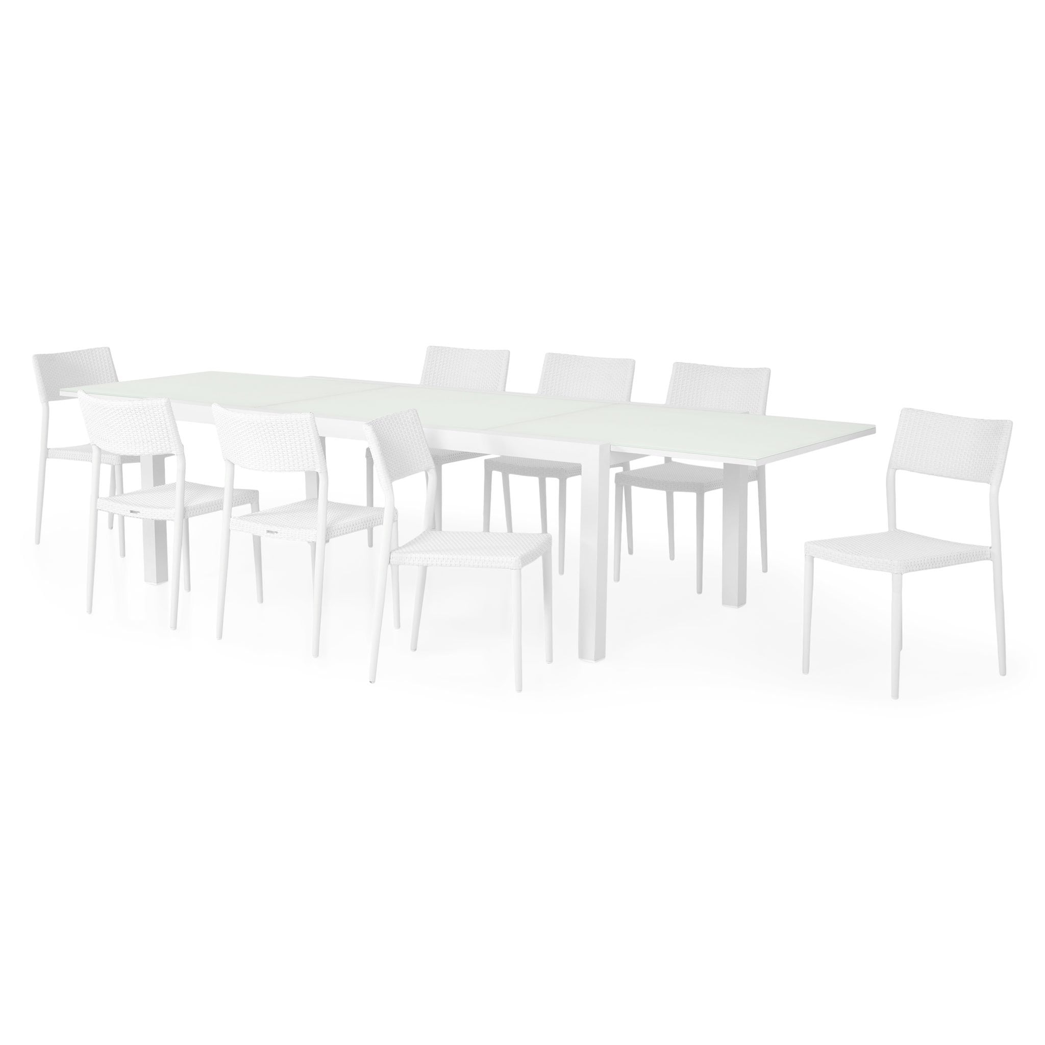 Set 8 scaune și masă extensibilă Artimes/Soria. Pregătiți grădina sau terasa de acasă având la dispoziție un set format din 8 scaune și o masă extensibilă din gama Artimes/Soria, unde să petreceți momente de neuitat alături de familie. Masa este realizată din structură de aluminiu vopsit în câmp electrostatic.