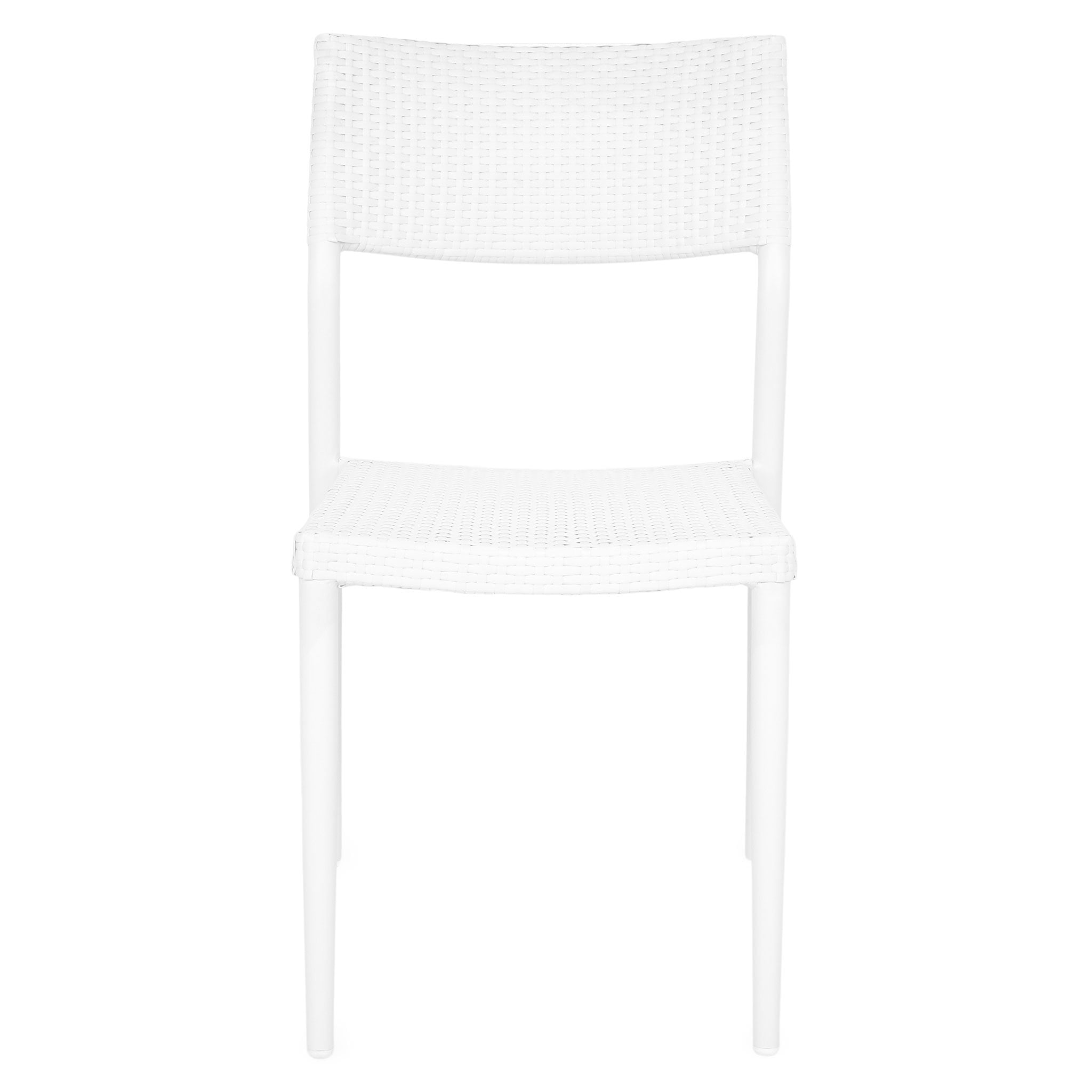 Topul acesteia este realizat din sticlă securizată 8 mm, cu finisaj mat. Scaunele sunt fabricate din structură de aluminiu vopsită în câmp electrostatic și împletită cu fibre sintetice tratate UV, ce imită ratanul. Scaunele sunt suprapozabile.