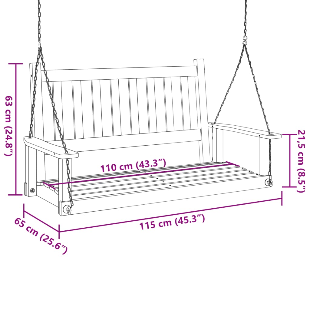 Bancă balansoar grădină lanțuri metalice negru lemn masiv brad