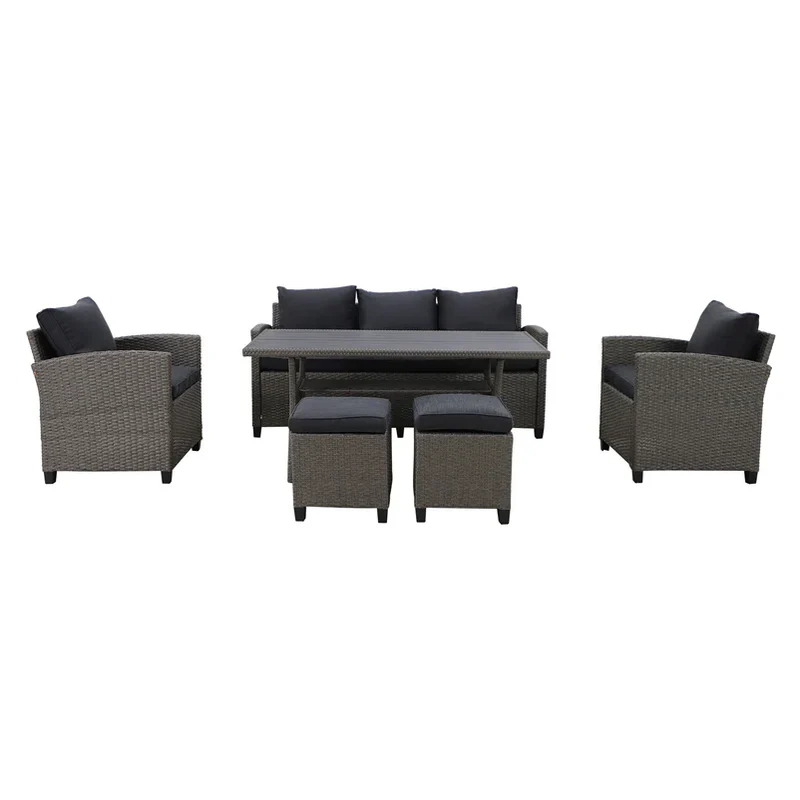 BAXTER Set mobilier terasă/grădină, 2 fotolii, canapea 3 locuri, 2 taburete și măsuță