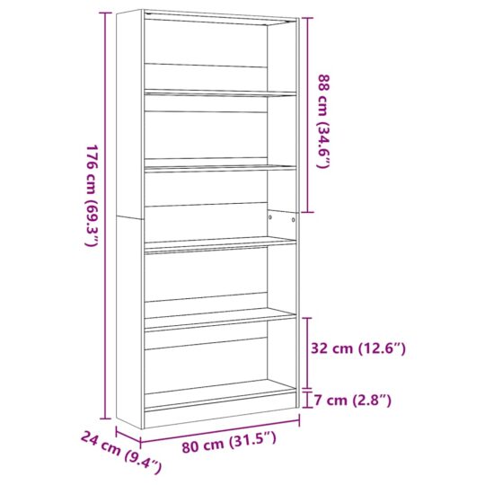 Bibliotecă, alb extralucios, 80x24x176 cm, lemn prelucrat