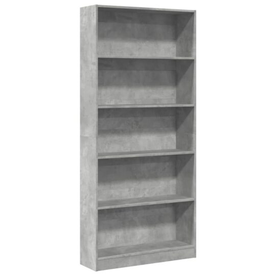 Bibliotecă, gri beton, 80x24x176 cm, lemn prelucrat