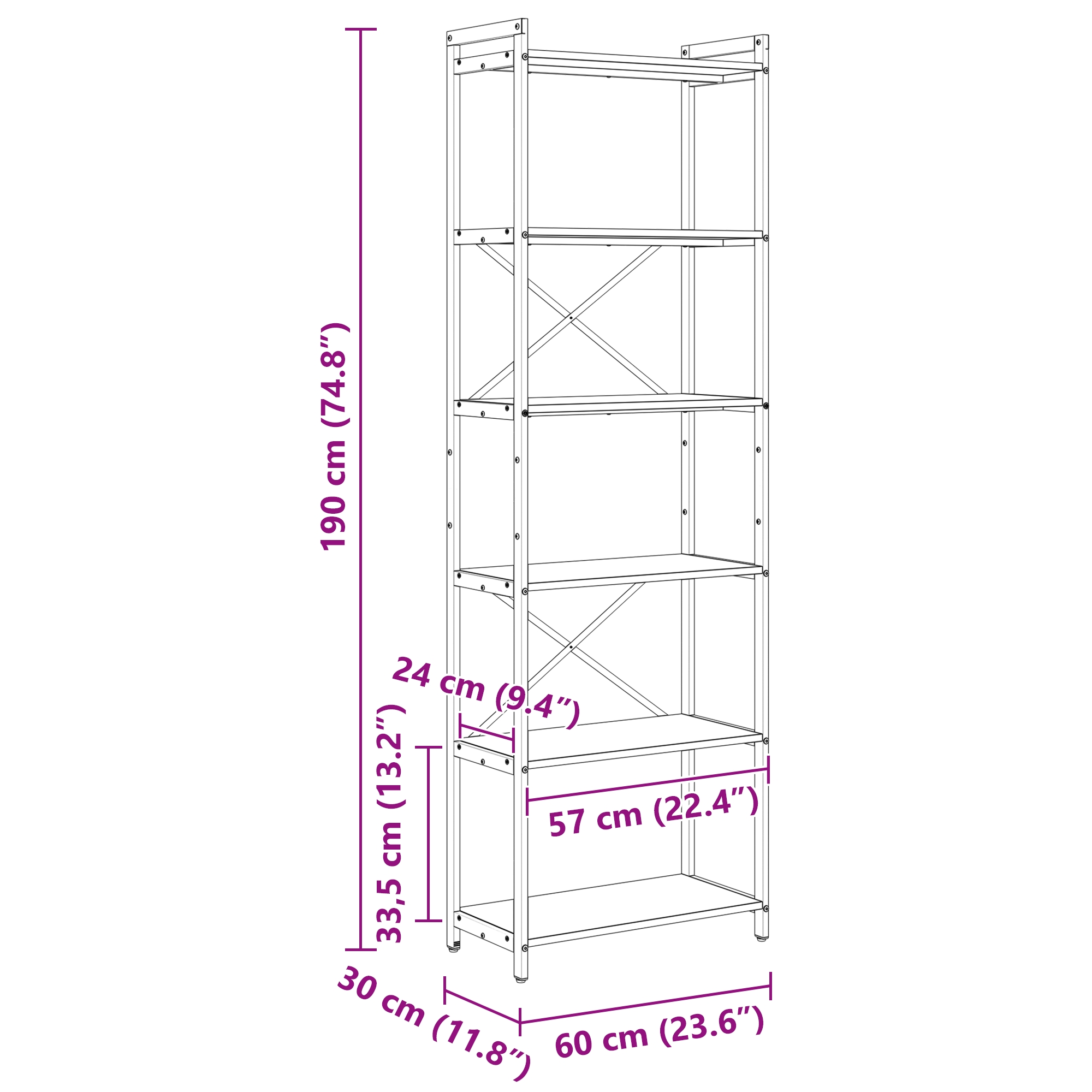 • Dimensiuni generale: 60 x 30 x 188 cm (L x l x î)
