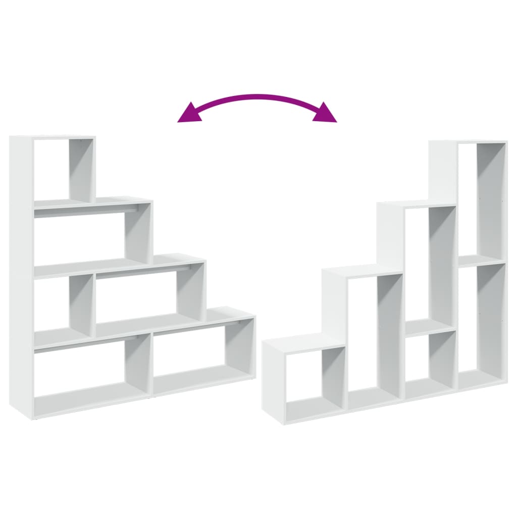 Bibliotecă/separator 4 niveluri, alb, 143,5x29x143,5 cm lemn