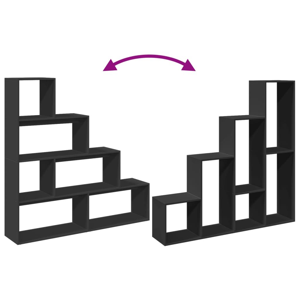 Bibliotecă/separator 4 niveluri, negru 143,5x29x143,5cm lemn