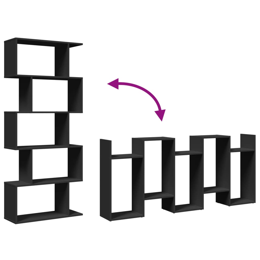 Bibliotecă/separator cameră 5 niveluri negru 70x24x161 cm, lemn