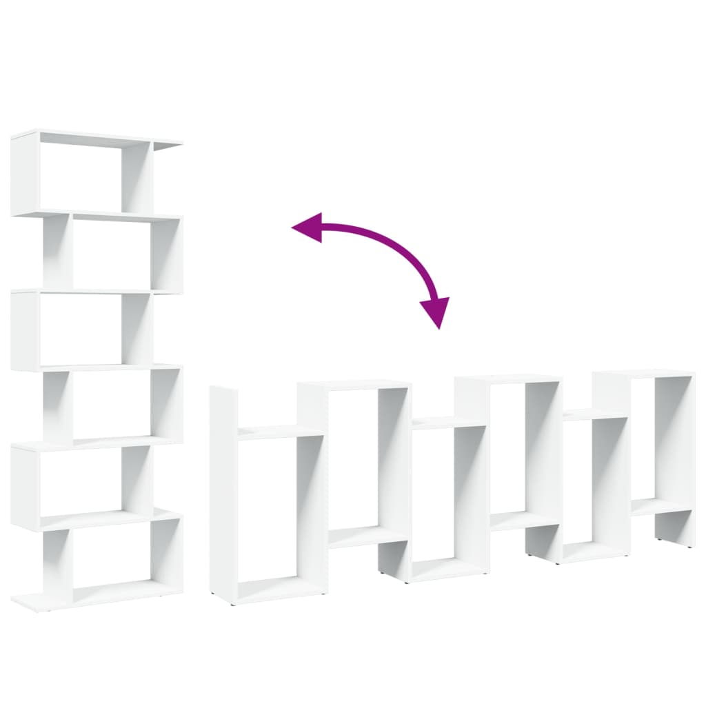 Bibliotecă/separator cameră, 6 niveluri, alb, 70x24x193cm, lemn