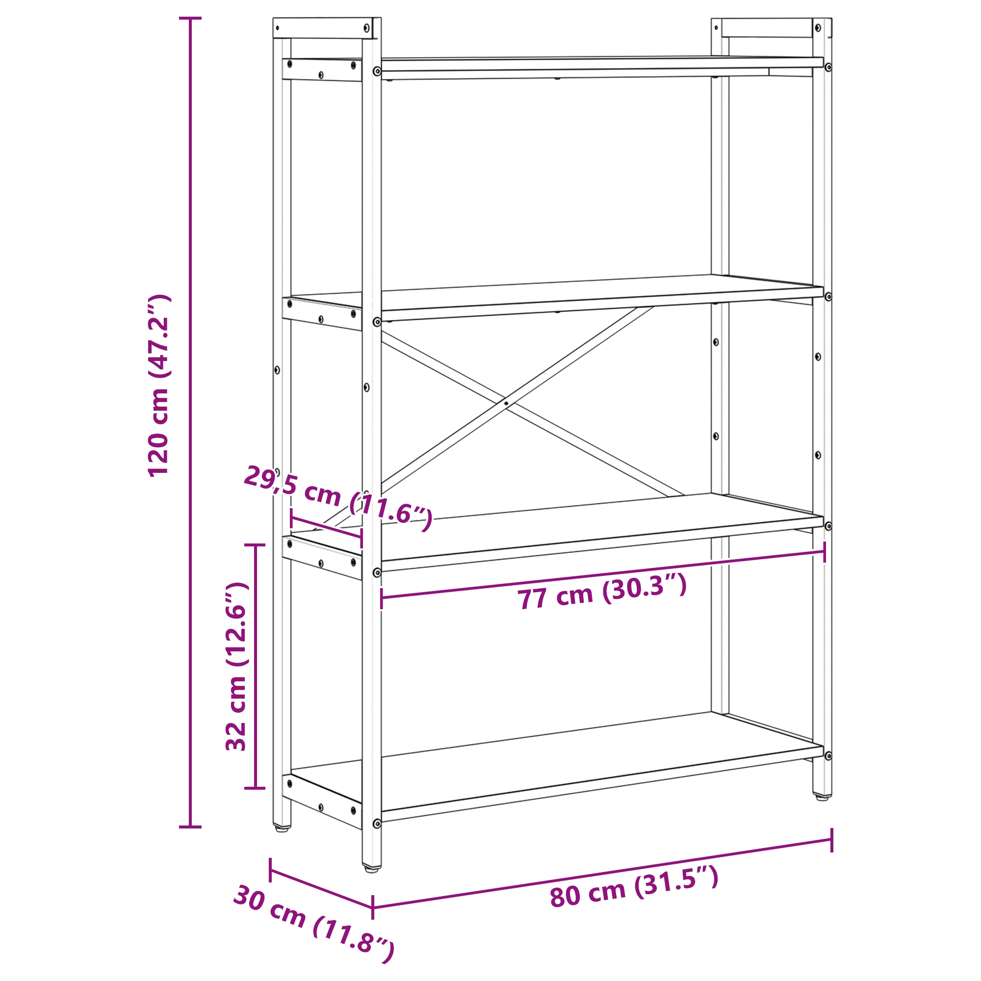 - Dimensiuni generale: 80 x 30 x 118 cm (L x l x î)