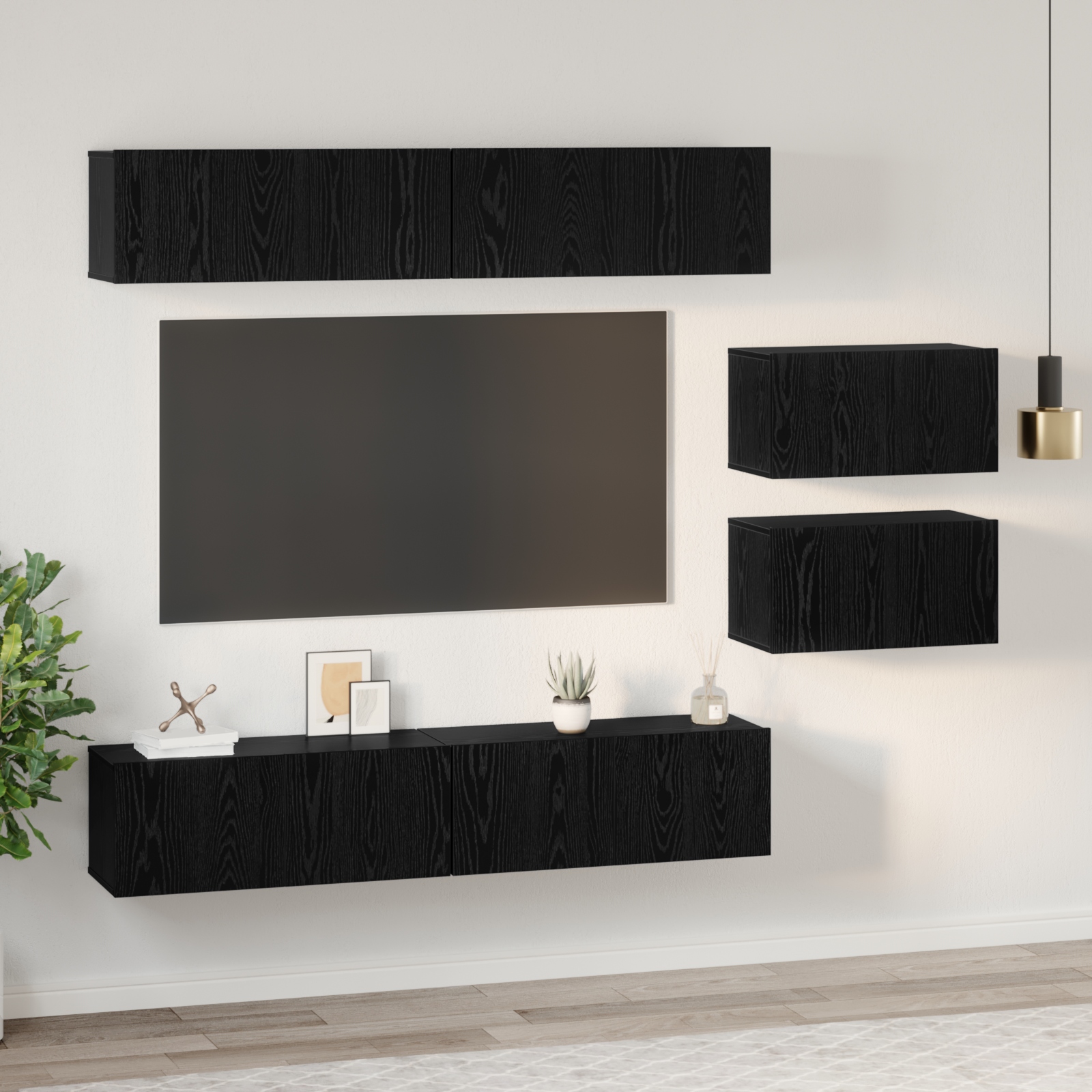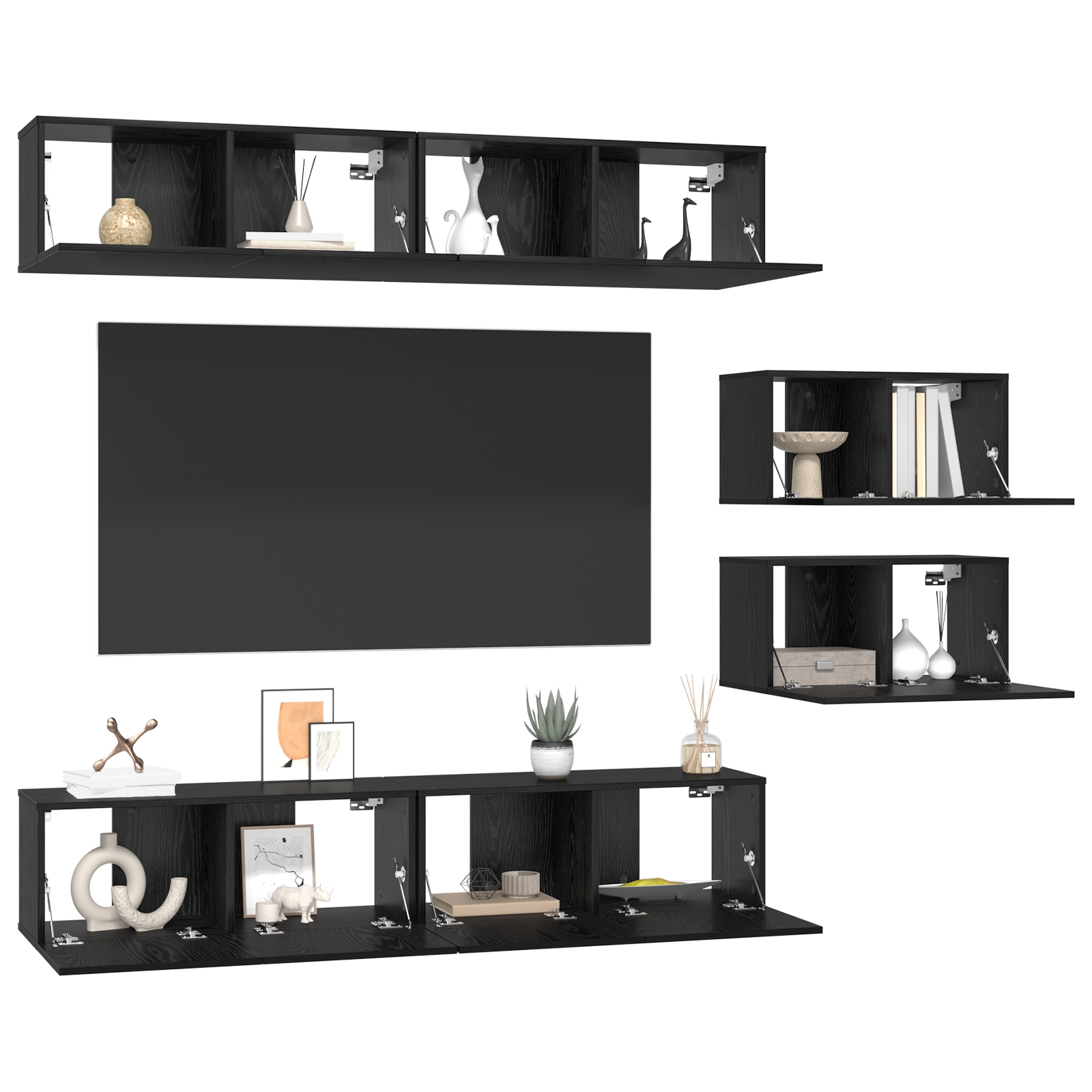 Set comodă TV 6 pcs Stejar negru 80 x 30 x 30 cm Lemn compozit