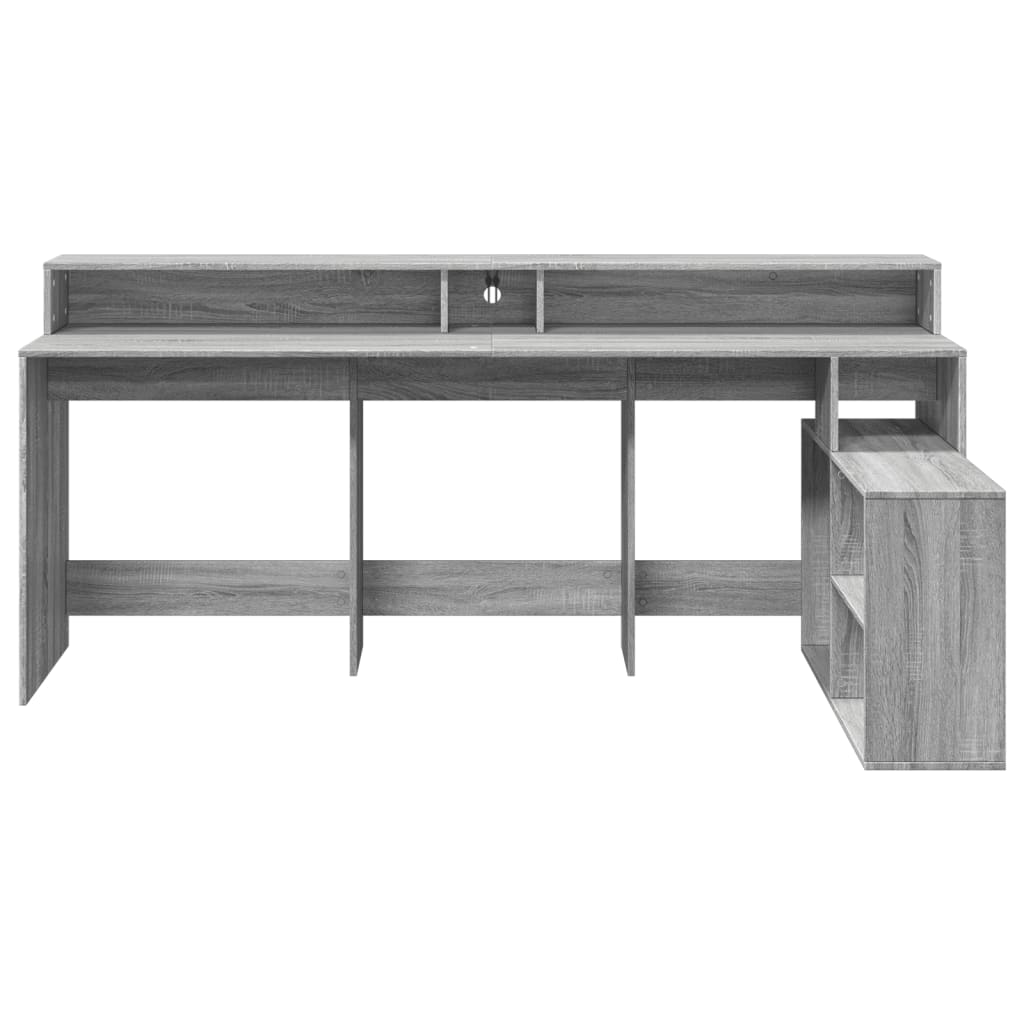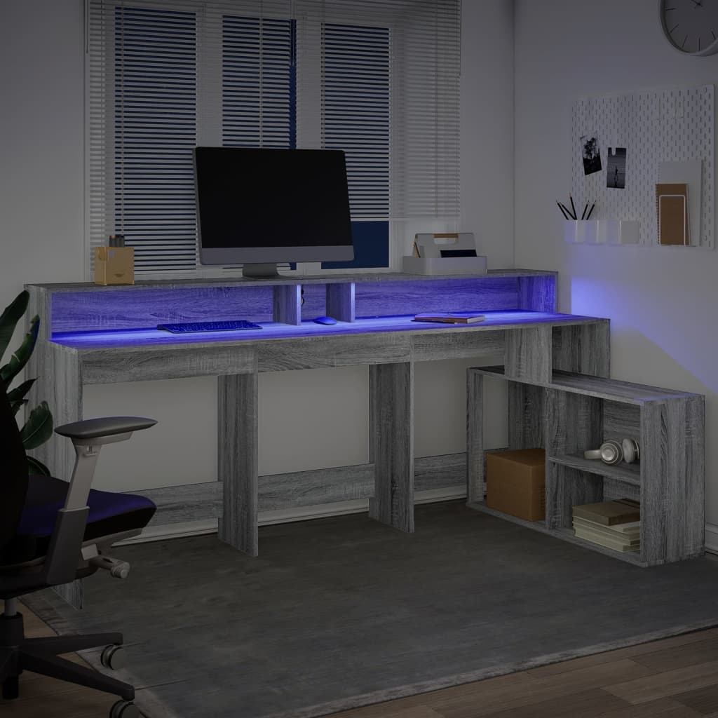 Birou cu lumini LED, gri sonoma, 200x104x91 cm, lemn prelucrat