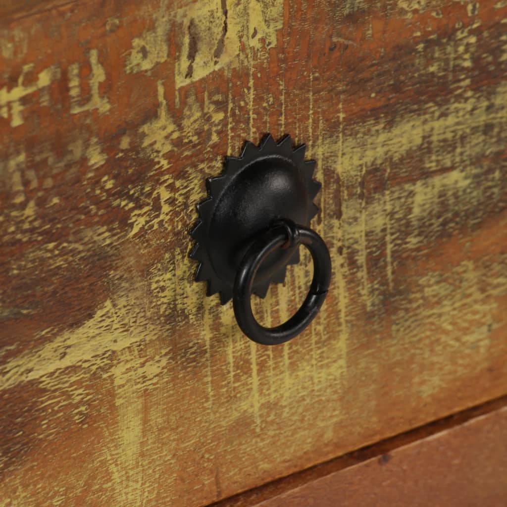 Biroul este realizat din lemn masiv reciclat, provenit din grinzi și podele recuperate din clădiri vechi demolate și poate include diferite tipuri de lemn, precum lemnul de pin, tec fag, stejar, cedru, mango, acacia etc. Acest lucru înseamnă că lemnul recuperat păstrează caracteristicile acestor tipuri diferite de lemn. Lemnul reciclat este deja învechit, erodat și uscat, astfel încât nu își poate reduce dimensiunile și nu se poate îndoi. Datorită granulației frumoase a lemnului, fiecare piesă de mobilier este unică și ușor diferită de celelalte. Semnele de uzură și structura vizibilă a granulației dezvăluie istoria bogată a lemnului și creează un aspect unic. Fiecare pas al procesului este realizat cu cea mai mare grijă, fie că este vorba de lustruire, vopsire sau lăcuire. Biroul are 5 sertare și 1 dulap, ce oferă spațiu de depozitare amplu pentru a vă păstra articole mici, precum chei, carnețele și alte mărunțișuri. Designul cu postament nu este doar atrăgător, ci și multifuncțional, pentru că, datorită blatului detașabil, biroul poate fi transformat, cu ușurință, în 2 dulapuri laterale separate. Este ușor de asamblat.