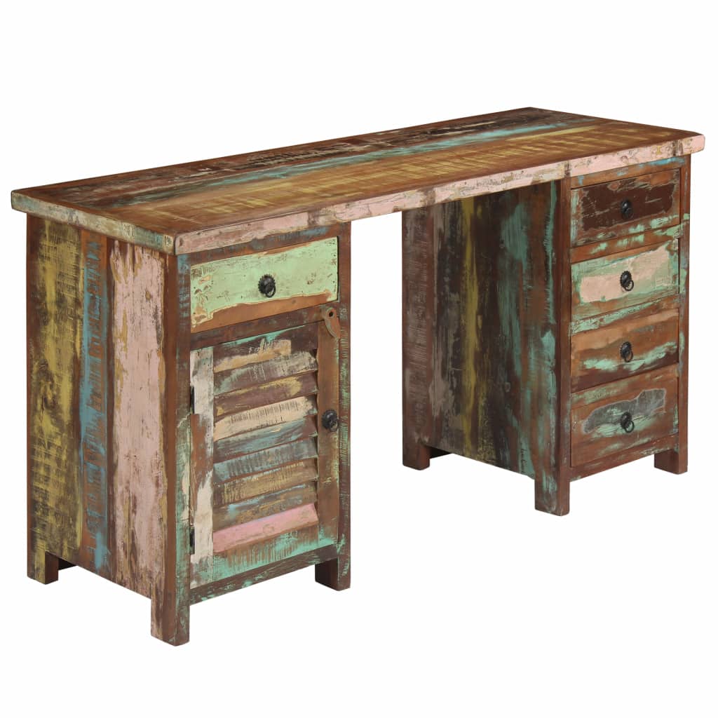 Birou cu postament, 140 x 50 x 77 cm, lemn masiv reciclat