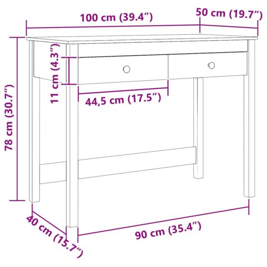 Birou cu sertar Max Brown 100 x 50 x 78 cm Lemn de pin masiv
