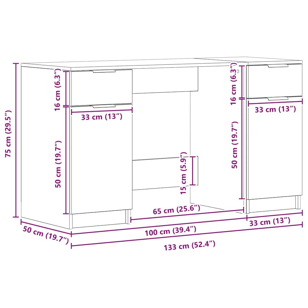 Birou cu sertar Stejar negru 133 x 50 x 75 cm Lemn compozit