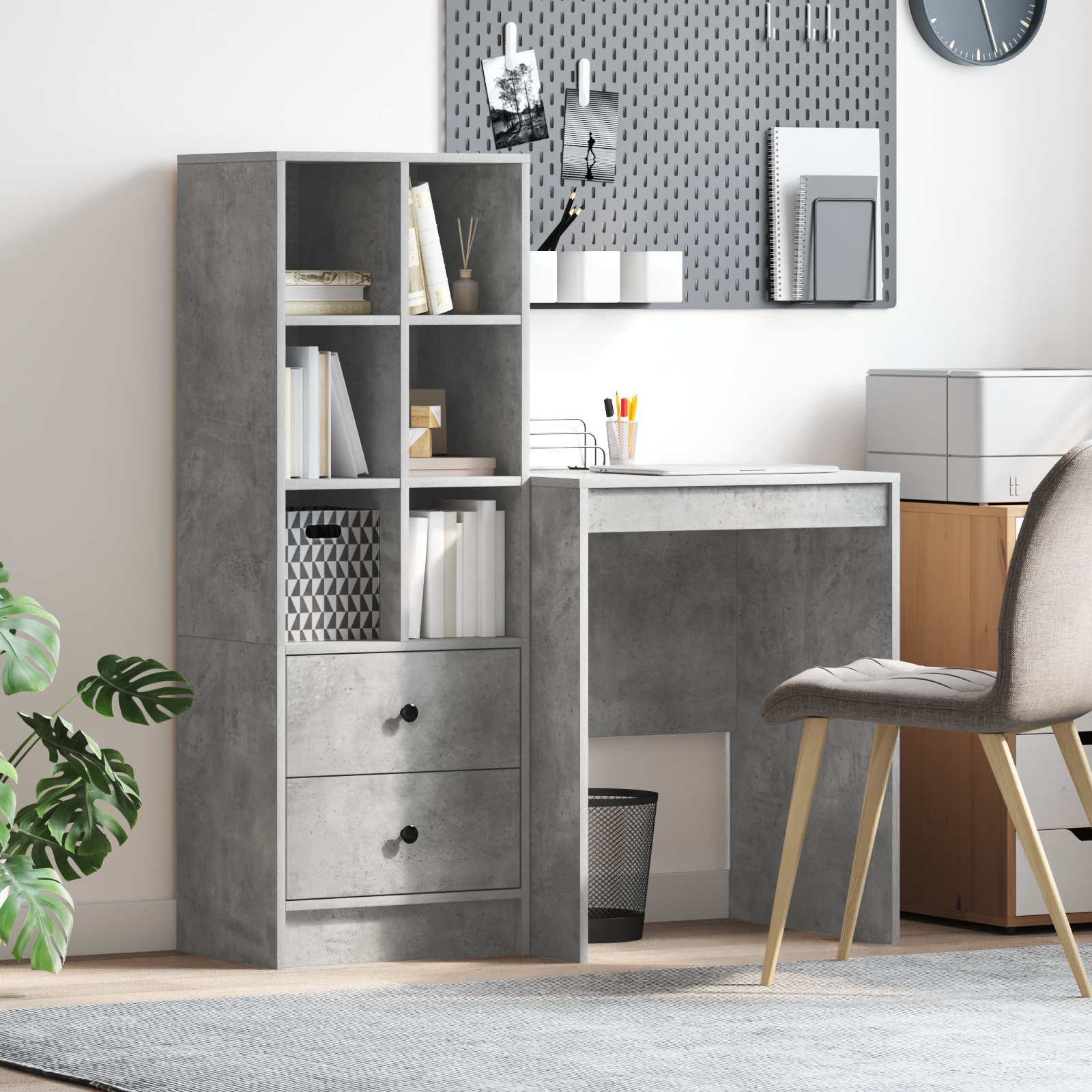 Birou cu spațiu de depozitare cu sertar 2 pcs Gri din beton
