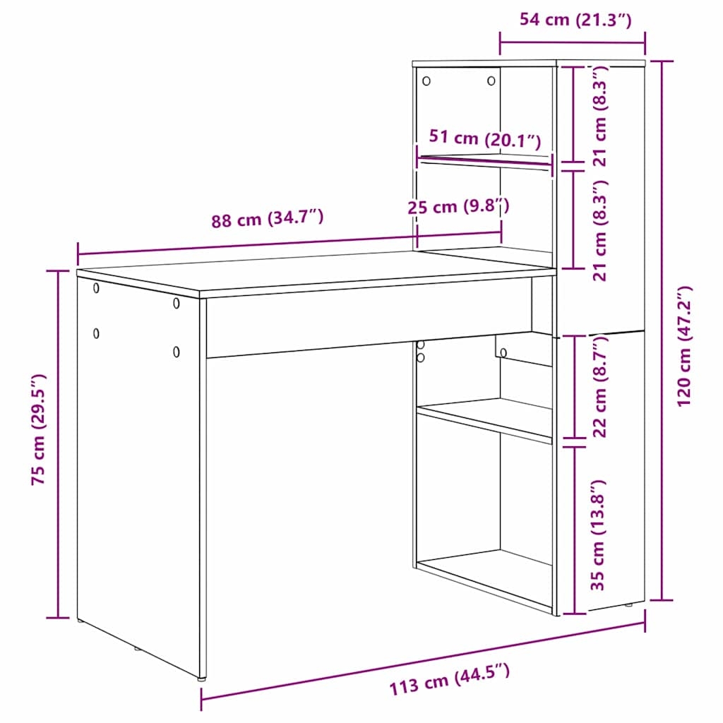 Birou cu raft Stejar afumat 113 x 54 x 120 cm Lemn compozit