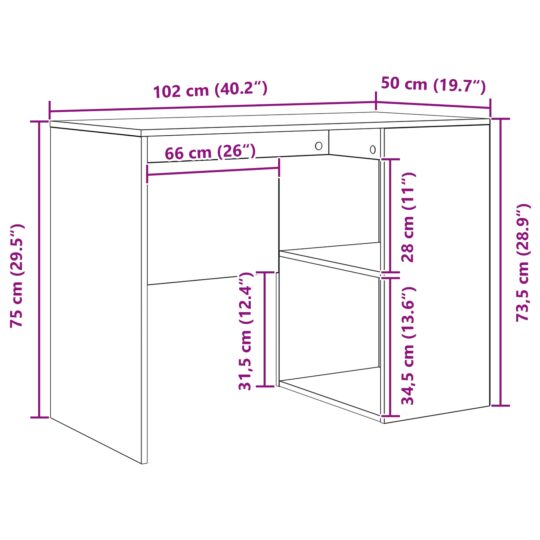 • Dimensiuni Practice: Cu dimensiunile de 102 x 50 x 75 cm, biroul oferă o suprafață compactă, dar suficient de spațioasă pentru scris, citit sau utilizat un laptop. Mărimea lui îl face ideal pentru spații mici sau medii, maximizând utilitatea fără a pierde funcționalitate.