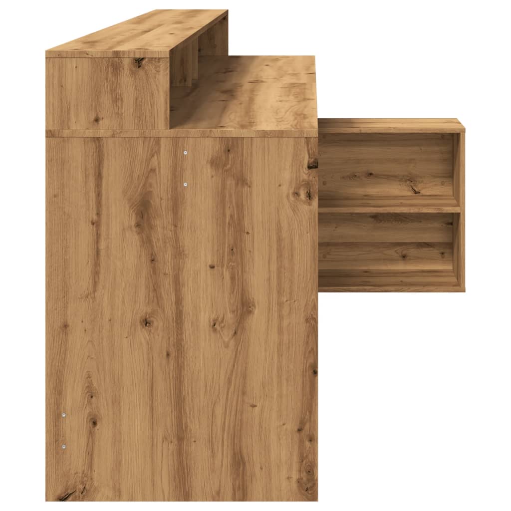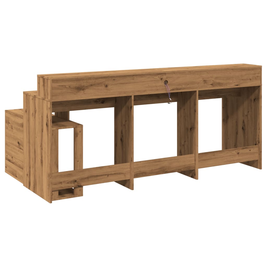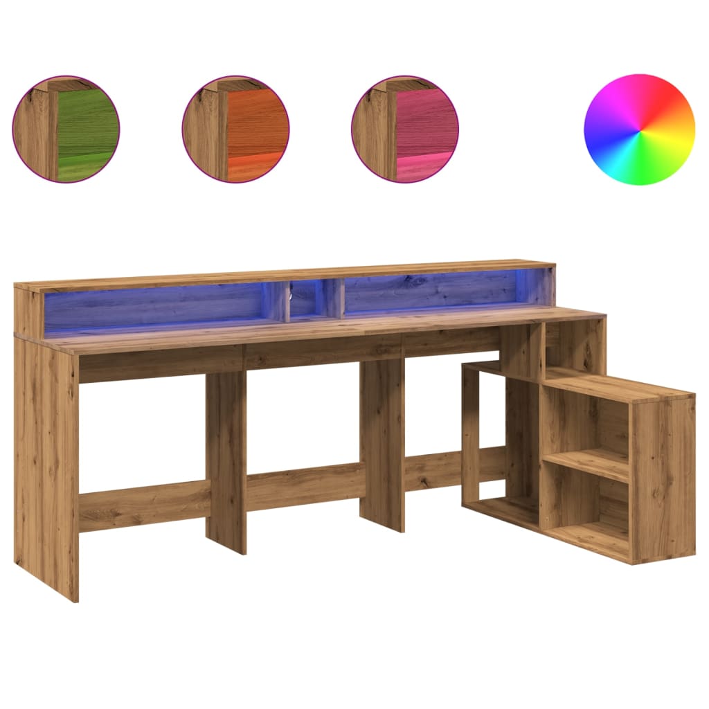 Birou lumini LED stejar artizanal 200x104x91 cm lemn prelucrat