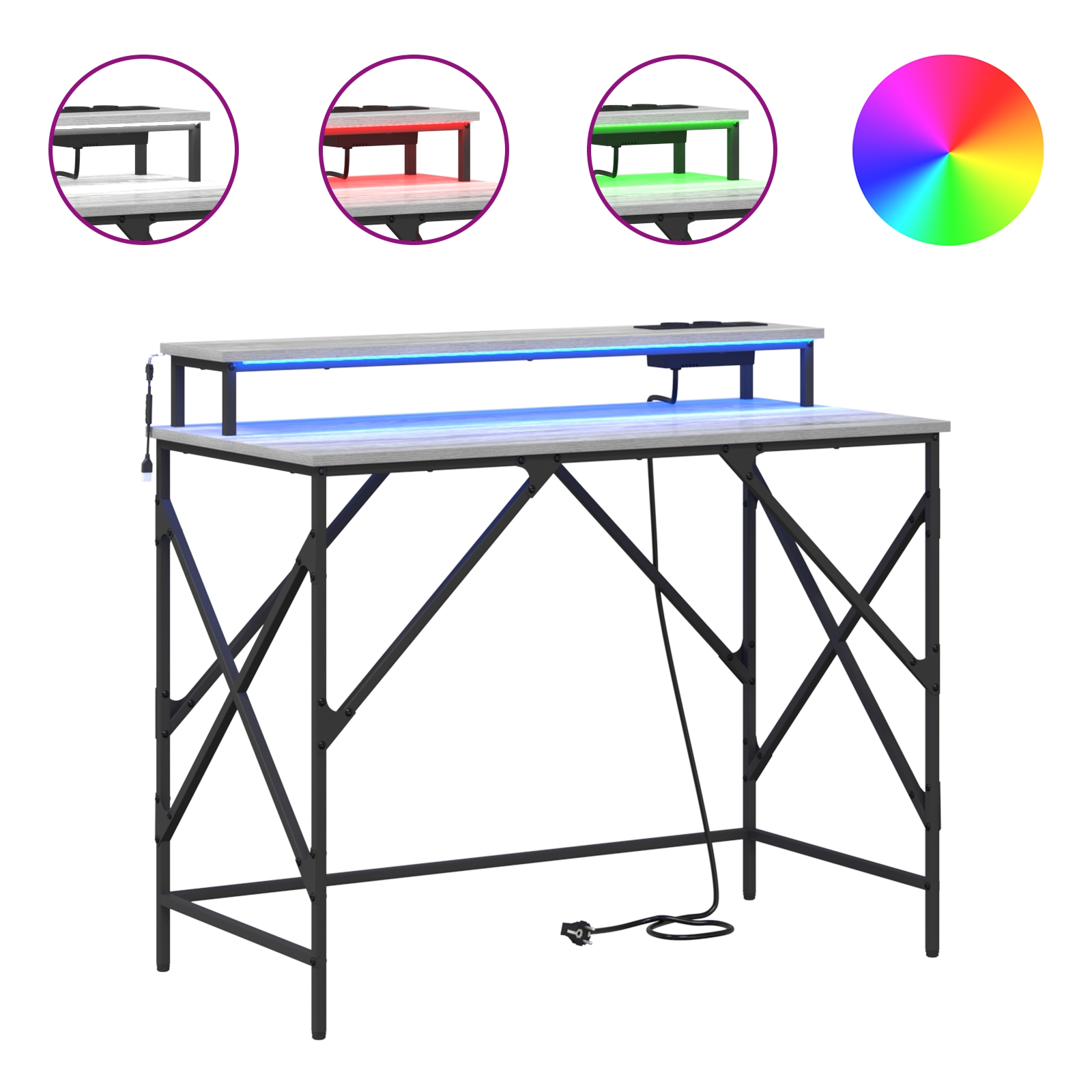 • Iluminare integrată Îți înfrumusețează spațiul de lucru cu benzi LED integrate, oferind iluminare multicoloră, perfectă pentru a-ți îmbunătăți vizibilitatea, mai ales în zilele întunecate. Combinația asta de stil și utilitate creează o atmosferă faină care stârnește creativitatea și concentrarea.