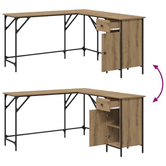 Acest birou ajustabil cu colț și rafturi e o piesă contemporană, gândită pentru soluții funcționale de lucru. Cu stilul său industrial, care aduce aminte de lofturile urbane, biroul ăsta creează o atmosferă unică în casa ta. Suprafața mare oferă loc suficient pentru documente sau pentru un monitor mare, fiind perfect pentru profesioniști și creativi. Contrastul dintre estetica industrială și lemnul prelucrat îl face nu doar vizual atrăgător, ci și practic, devenind un element esențial pentru orice setup modern de acasă sau birou.
