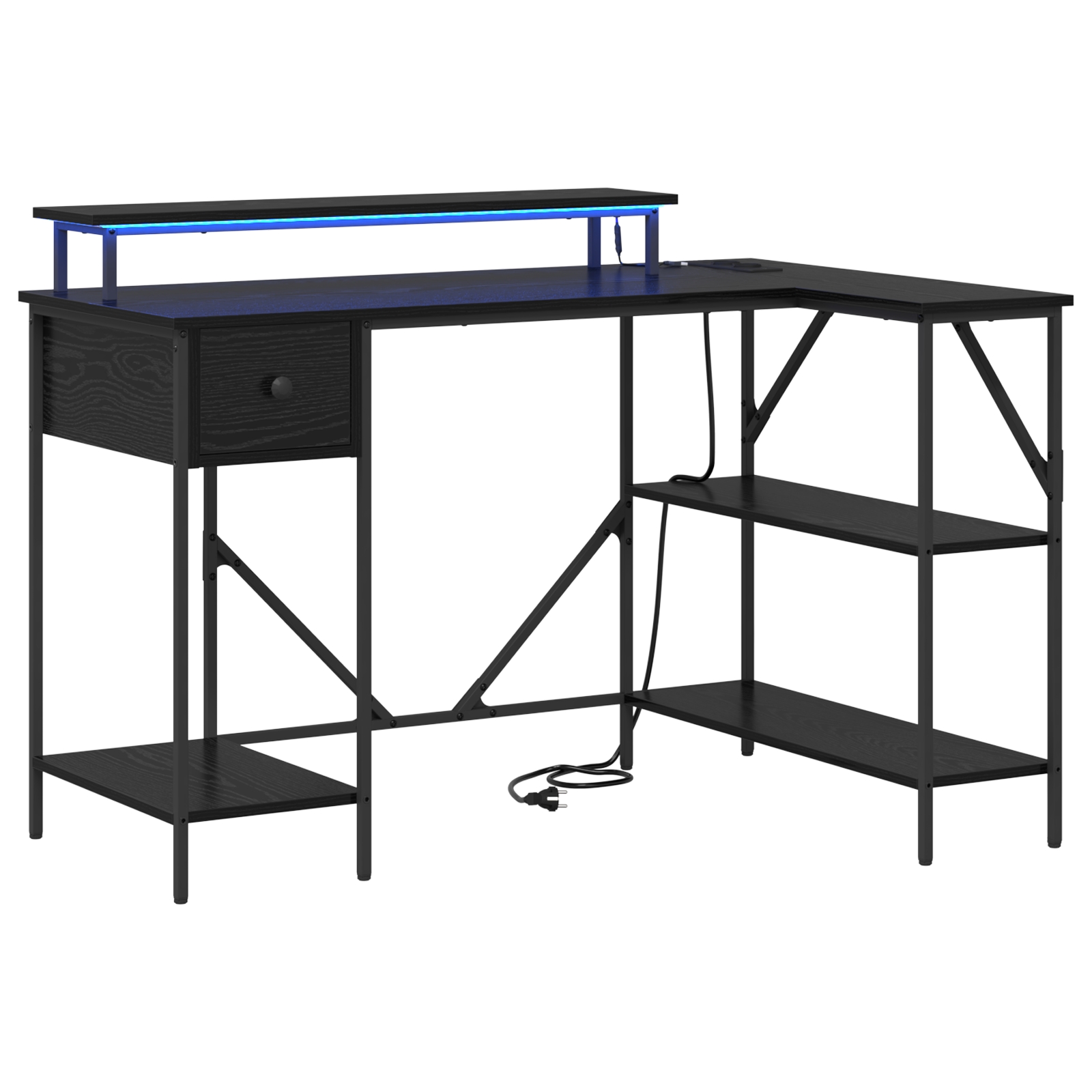 • Funcții Incorporate: Cu o stație de încărcare integrată, biroul ăsta îți face viața mai ușoară când vine vorba de încărcatul dispozitivelor. Plus, benzile LED luminează biroul, fiind perfecte pentru a duce la bun sfârșit treburile sau pentru sesiuni de studiu.