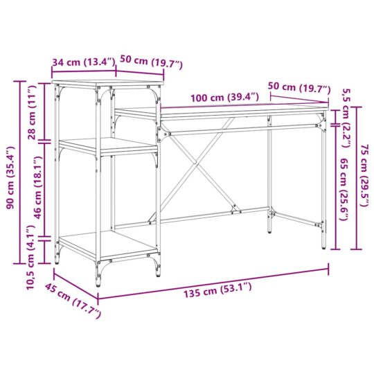 Birou Stejar Negru 135 x 50 x 90 cm Lemn compozit