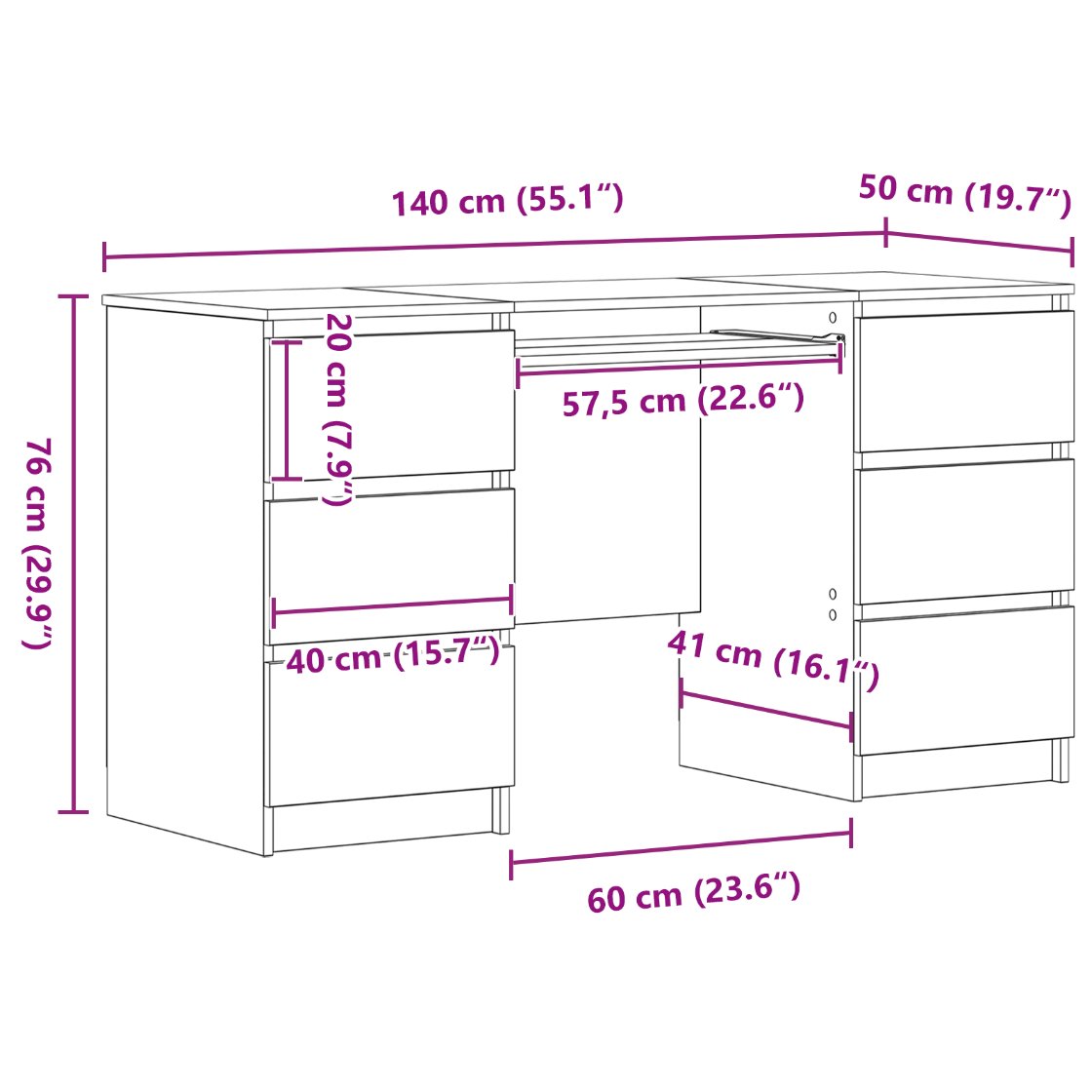 - Suprafață Compactă: Dimensiunile de 140 x 50 x 76 cm te ajută să folosești la maxim spațiul tău, oferind un blatul generos fără a ocupa prea mult din cameră. E perfect pentru sarcini care necesită concentrare, fie că scrii sau lucrezi pe laptop.