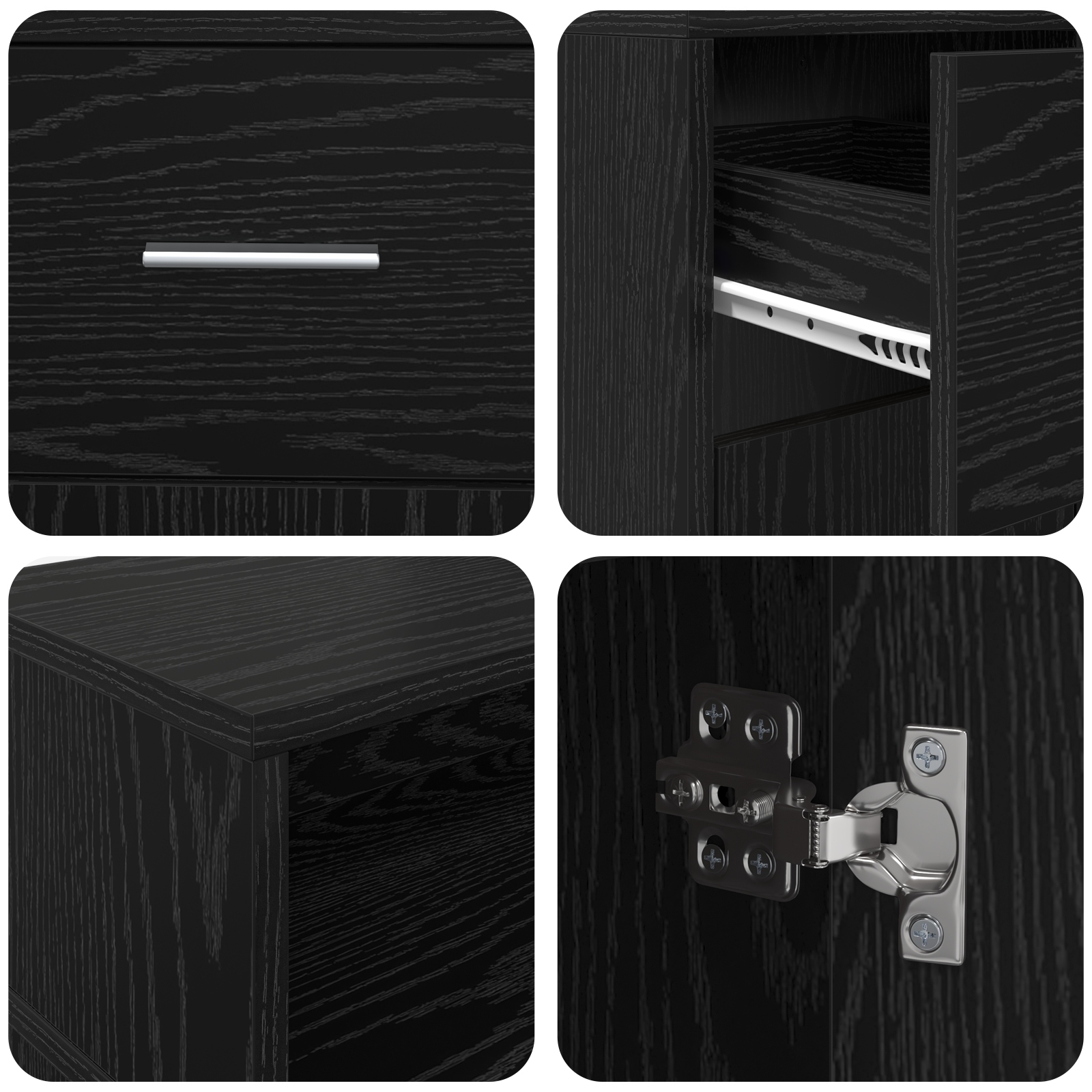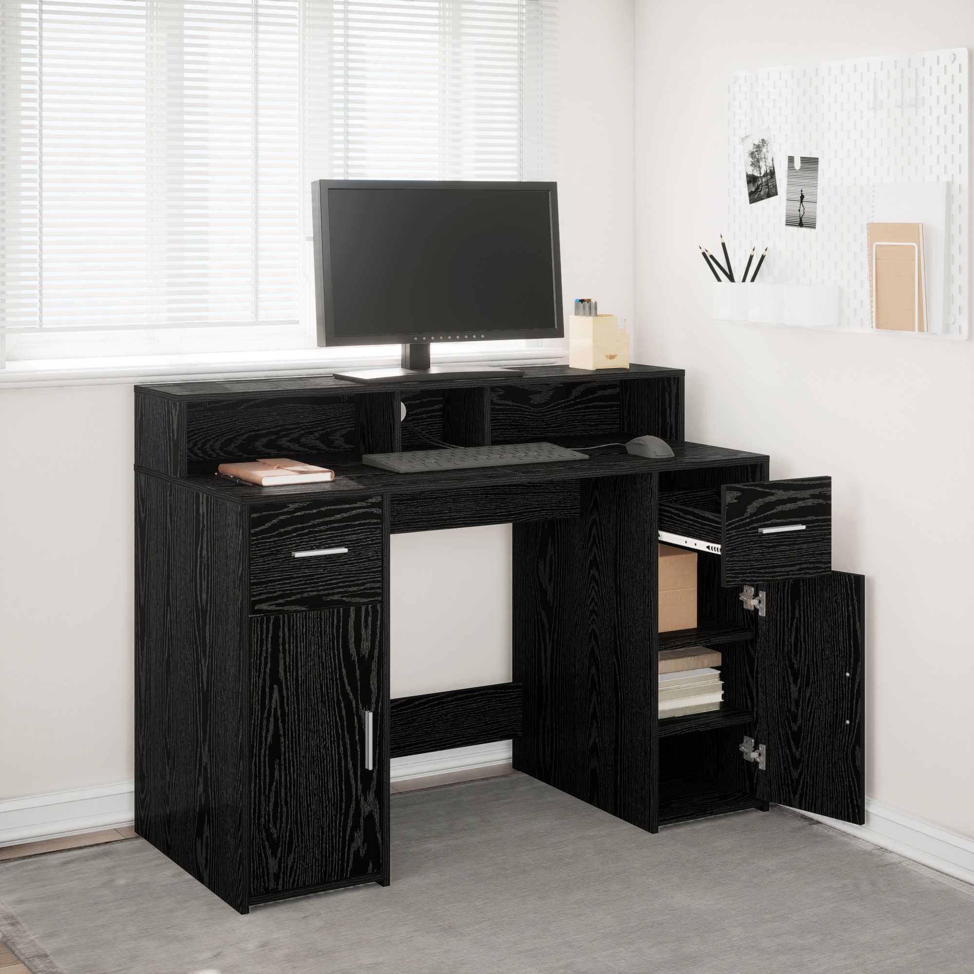 - Lemn prelucrat texturat: Biroul ăsta e construit din lemn prelucrat texturat. Arată modern și e robust, suportând uzura de zi cu zi. Finisajul de stejar negru îi dă un strop de eleganță, potrivindu-se în diverse stiluri de interior. E solid, deci e o alegere smart atât pentru stil, cât și pentru utilitate.