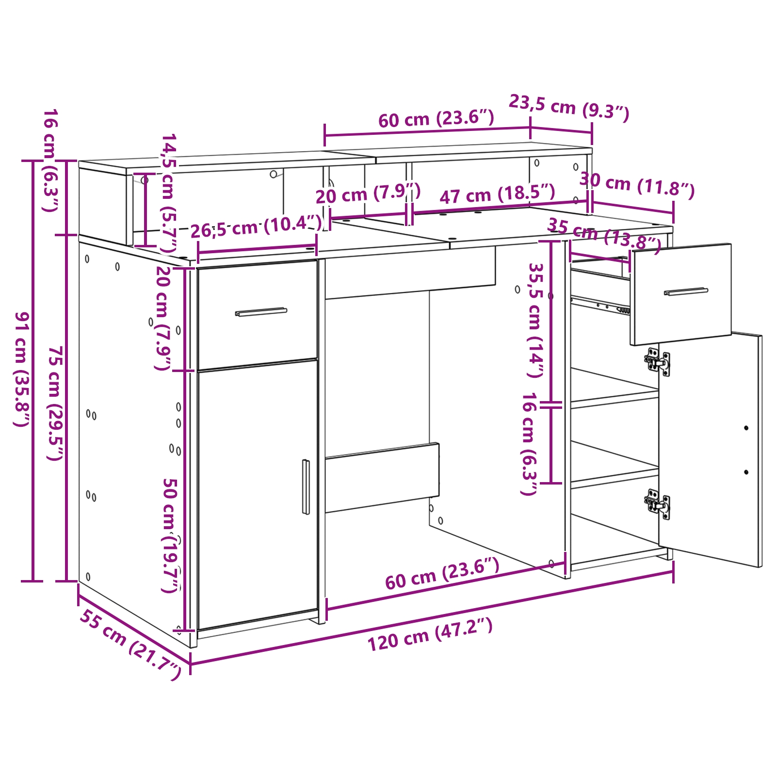 Birou cu sertar Stejar negru 120 x 55 x 91 cm Lemn compozit