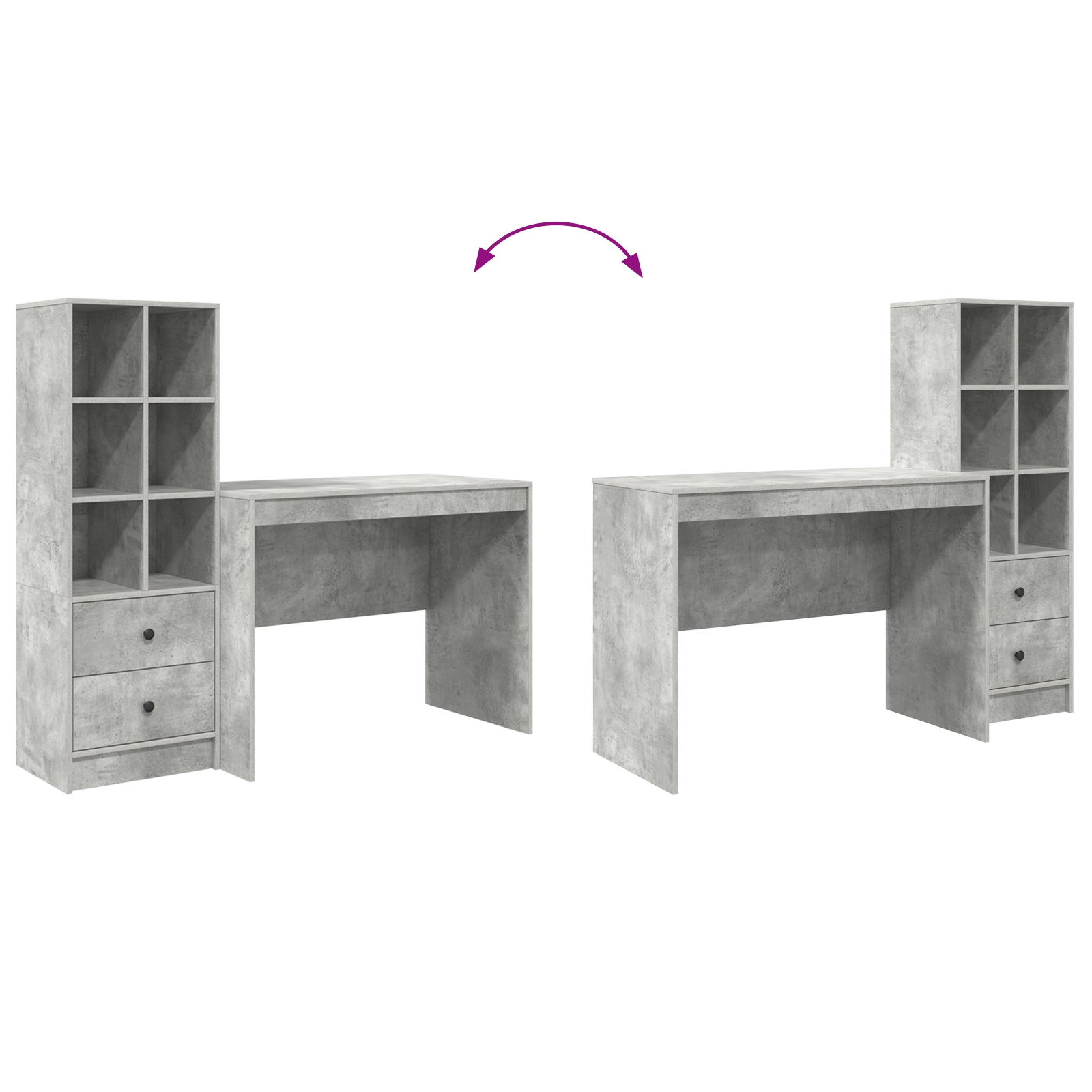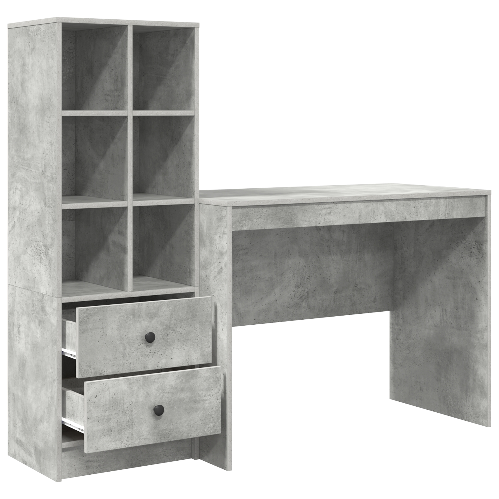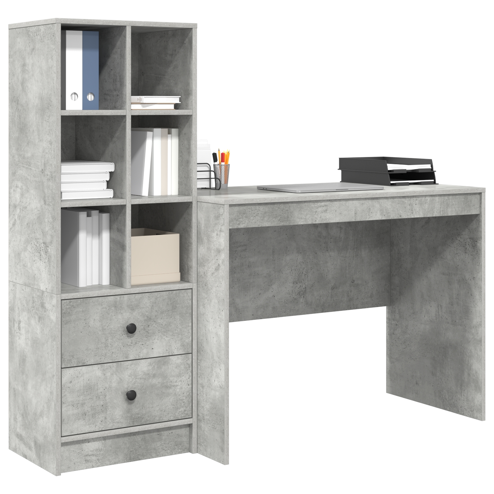 Birou cu spațiu de depozitare cu sertar 2 pcs Gri din beton
