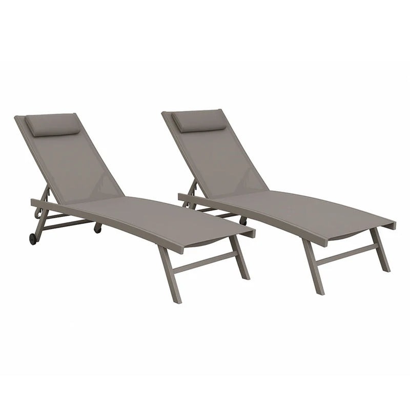 Set 2 șezlonguri Bogota. Setul Bogota include 2 șezlonguri cu design modern și structură ușoară din aluminiu vopsit în câmp electrostatic, rezistentă la coroziune și intemperii. Șezlongurile sunt prevăzute cu spătar reglabil și roți discrete pentru manevrare ușoară. Ideal pentru piscină, terasă sau grădină, acest set îmbină confortul cu eleganța minimalistă.