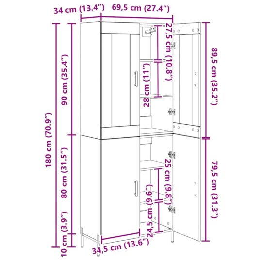 - 1 x Sideboard: 69,5 x 34 x 90 cm (LxWxH)