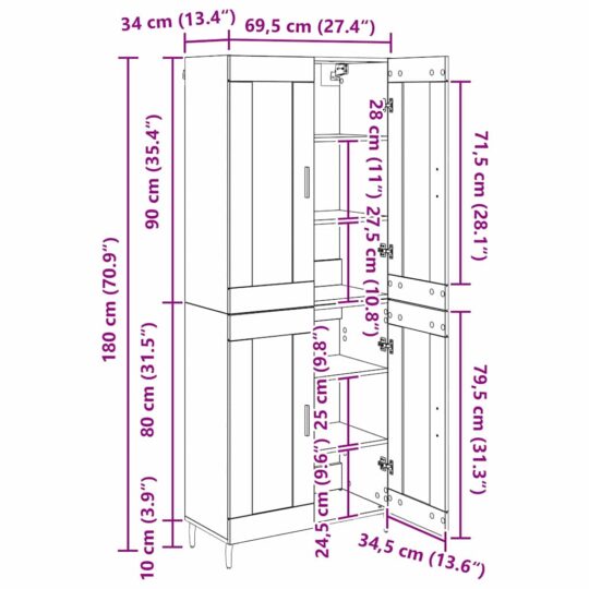 - Dimensiuni generale: 69,5 x 34 x 180 cm (L x l x î)