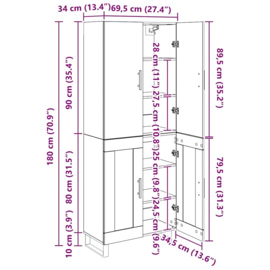 • Dimensiuni generale: 69,5 x 34 x 180 cm (L x l x î)
