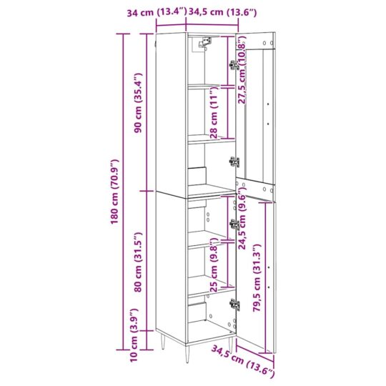 - Dimensiuni generale: 34,5 x 34 x 180 cm (L x l x î)