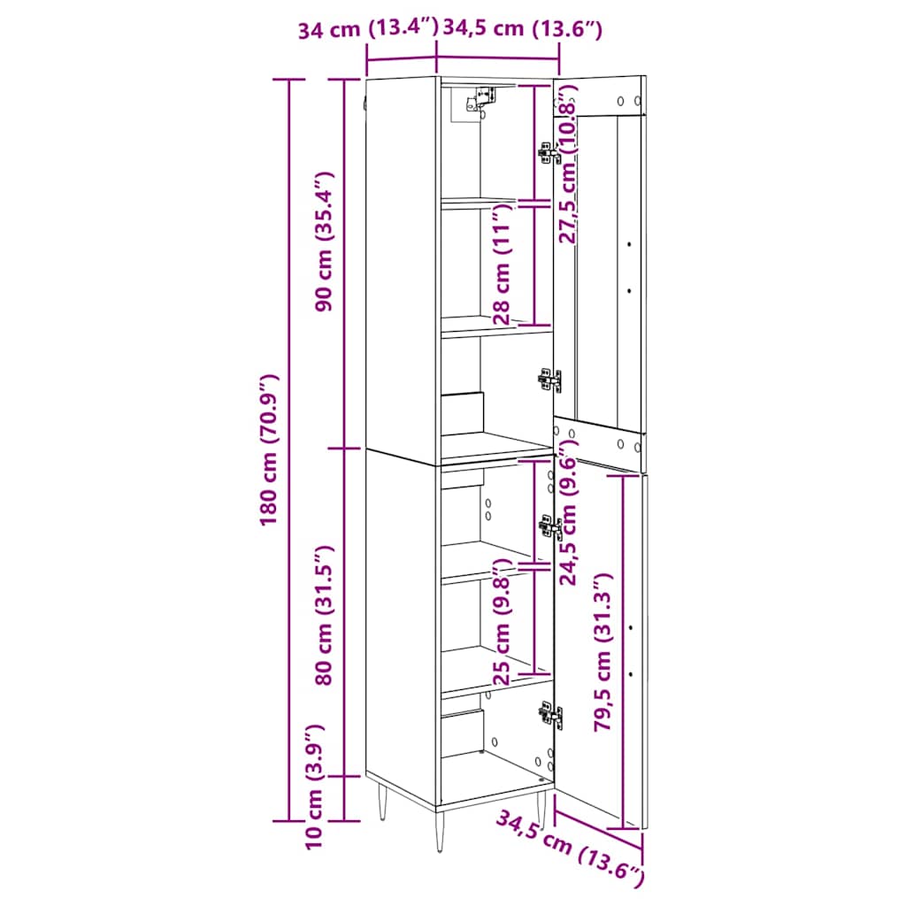 - 1 x Comodă: 34.5 x 34 x 90 cm (LxWxH)