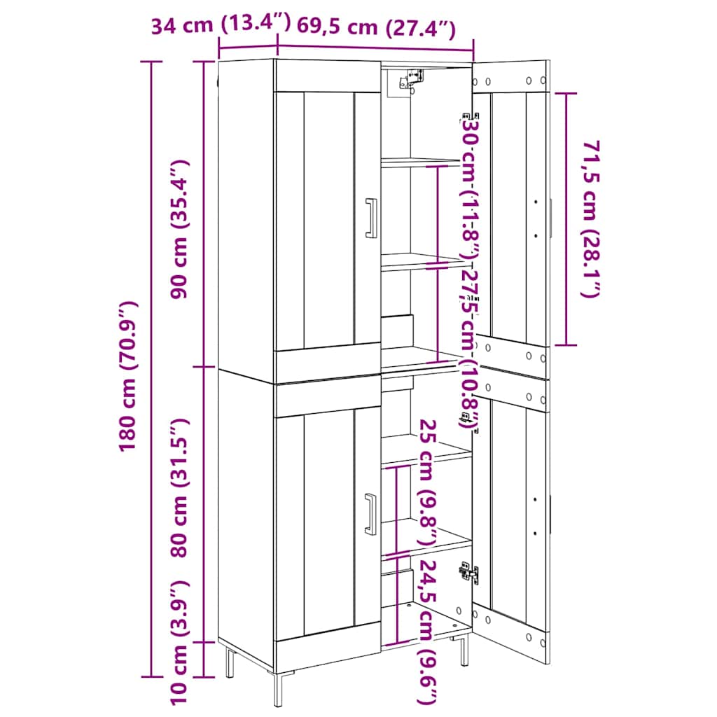 Bufet 2 pcs Stejar Artizanal 69,5 x 34 x 180 cm Lemn compozit