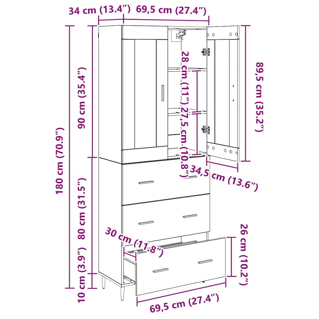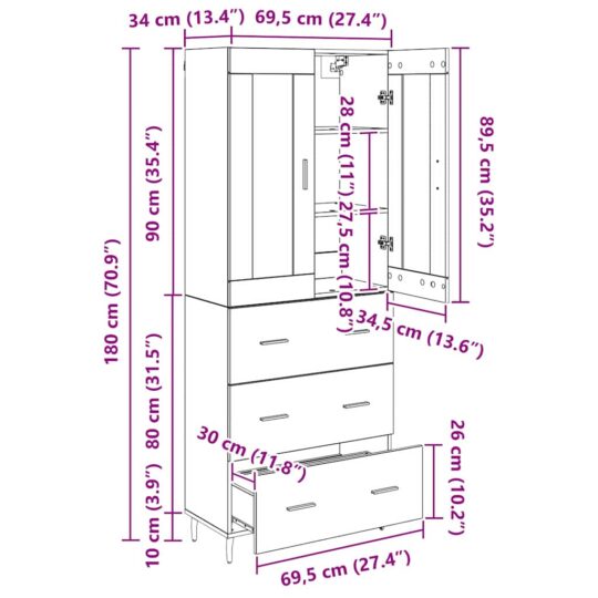 - 1 x Comodă: 69.5 x 34 x 90 cm(LxWxH)