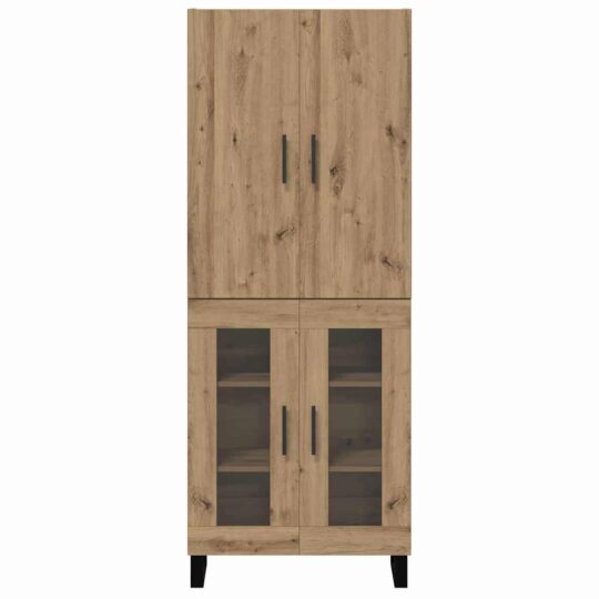 Bufet 2 pcs Stejar Artizanal Lemn Stratificat și Sticlă