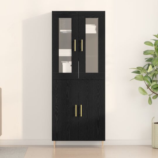 Bufet 2 pcs Stejar negru 69.5 x 34 x 180 cm Lemn compozit