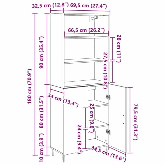 Fii primul care scrii o recenzie pentru „Bufet 2 pcs Stejar Negru 69,5 x 34 x 180 cm Lemn compozit”