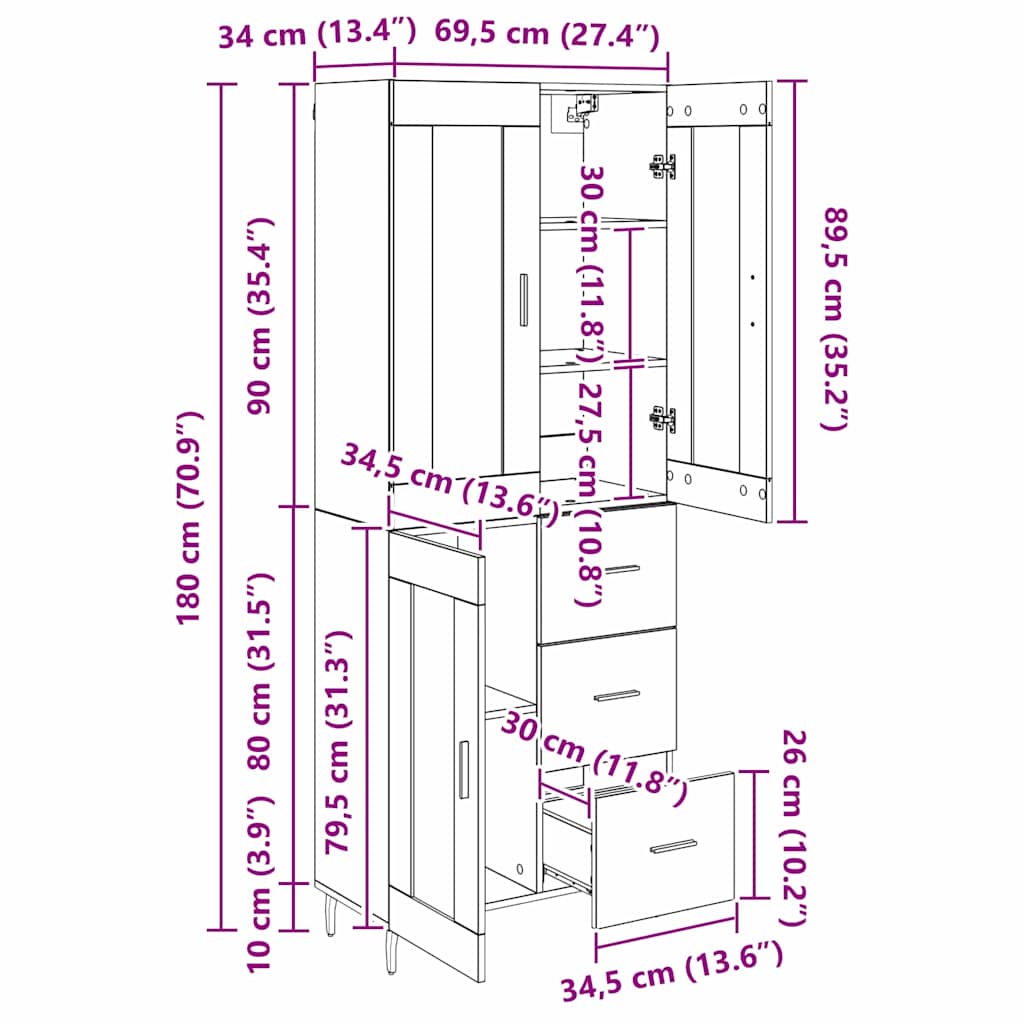 Bufet 2 pcs Stejar Negru 69,5 x 34 x 180 cm Lemn compozit
