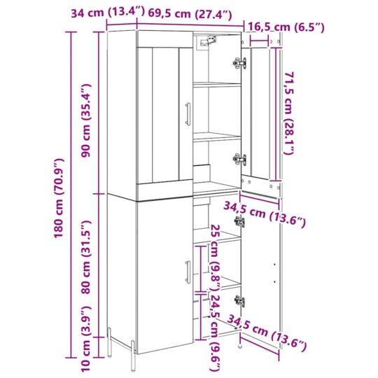 Fii primul care scrii o recenzie pentru „Bufet 2 pcs Stejar Negru 69,5 x 34 x 180 cm Lemn compozit”
