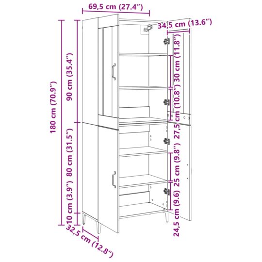 - 1 x Placă pentru dulap: 69,5 x 34 x 90 cm (Lxlxh)