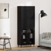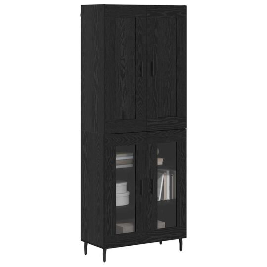 Bufet 2 pcs Stejar Negru Lemn Stratificat și Sticlă