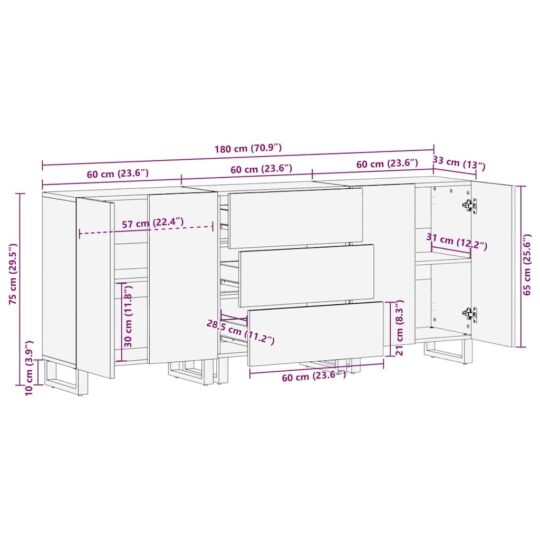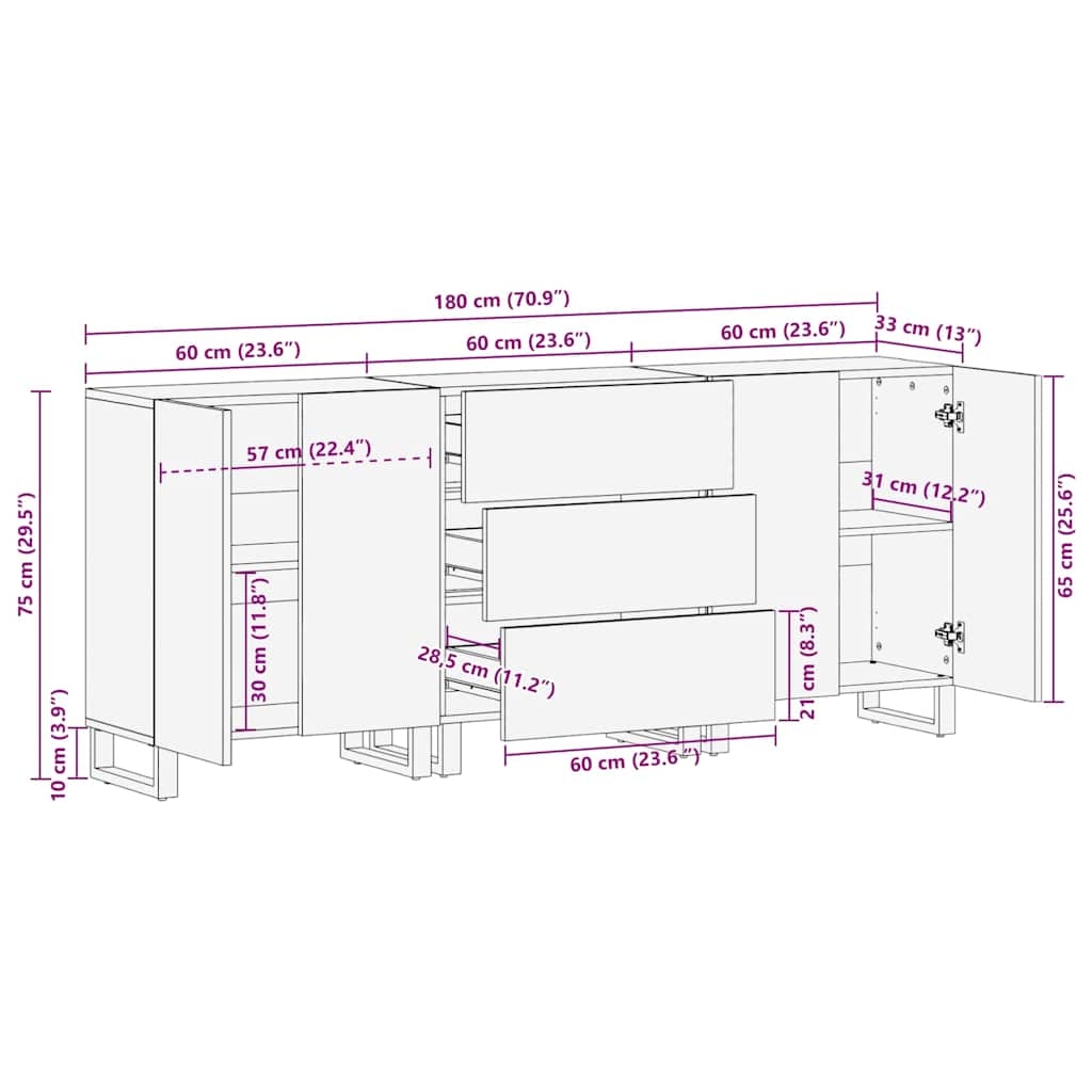 Bufet 3 pcs Maro 60 x 33 x 75 cm Lemn masiv de mango