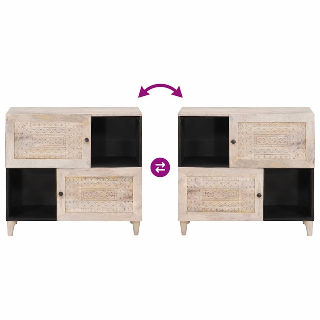 Acest dulap lateral din lemn solid de mango e o piesă stylish și utilă care aduce un vibe modern în orice cameră de zi. Designul lui e contemporan, cu linii clare și puține decorațiuni, ceea ce îl face să se integreze perfect în orice stil de decor. E perfect pentru cineva care caută o soluție chic de depozitare, oferind mult spațiu și adăugând un sentiment cald și natural camerei.