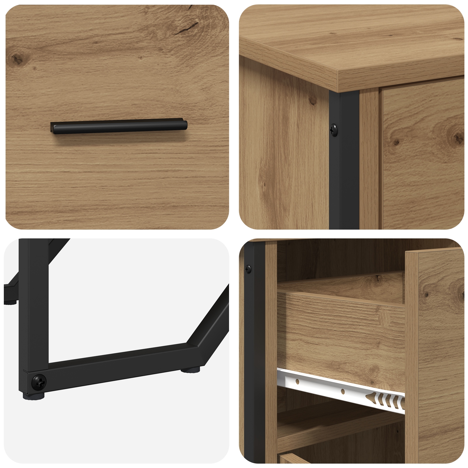 - Stil Industrial: Cu designul său inspirat din depozite, bufetul ăsta se potrivește perfect în casele moderne asemănătoare loft-urilor. Aspectul său urban și neutru îl face ușor de asortat cu diverse stiluri de decor, oferindu-ți atât stocare practică, cât și un pic de decor în casa ta. Forma asta elegantă devine un element de interes în orice cadru, atrăgând fanii vibe-urilor industriale și minimaliste.